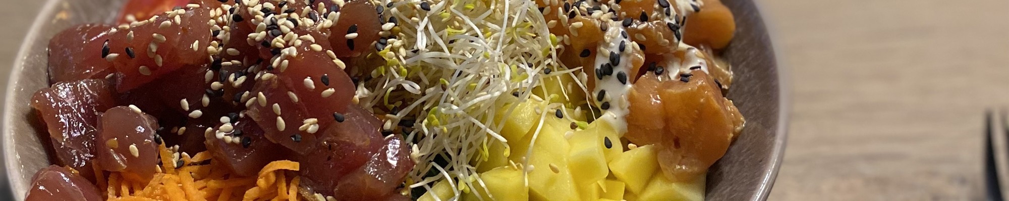 Wij serveren diverse soorten verse Poké bowls met zalm, tonijn, een combinatie van zalm en tonijn, kip, biefstuk of vegetarisch. Deze kunt u ook bestellen via onderstaand formulier. Te bestellen tot uiterlijk 16:00 uur om dezelfde dag af te halen. Afhalen kan tussen 10:00 en 21:00 uur.